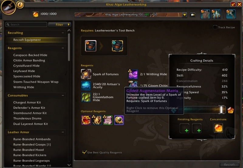 Crafting orders now include a new Optional Reagent slot for Augmentation Matrices, allowing recrafting to push gear higher.